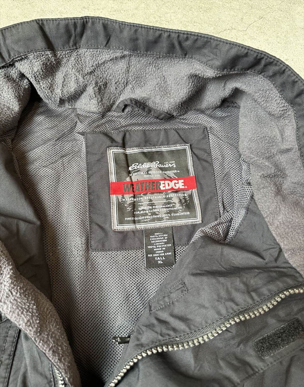 防水性、撥水性、透湿性、防風性の高いエディバウアーのウェザーエッジ。裏地はメッシュでジッパー付き内ポケットにフロント4ポケットで丁度良い収納力です。無駄のないシンプルなデザインでオールシーズン間違いなく使える1着です。※写真8枚目ダブルジッパーの1つのスライダーの持ち手が破損してます。